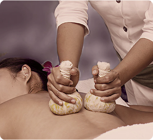 Heated Thai herbal packs to ease deep muscle pain and calm the nervous system.